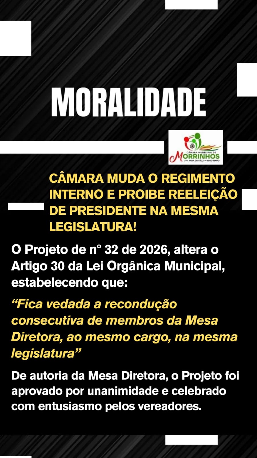 Câmara Municipal de Morrinhos reforça o convite para