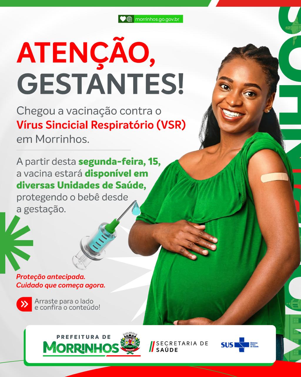 #Morrinhos Prefeitura de Morrinhos inicia vacinação de gestantes para proteger bebês contra a bronquiolite A Prefeitura de Morrinhos, por meio da Secretaria Municipal de Saúde, iniciou nesta segunda-feira (15) a vacinação de gestantes a Adagmar / 3 semanas Comment (0)