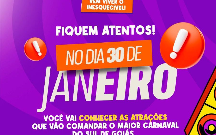 A Prefeitura de Morrinhos convida você para o Lançamento Oficial do Carna Morrais 2026, momento em que serão apresentados a programação, as atrações e o planejamento do maior carnaval do Sul de Goiás.