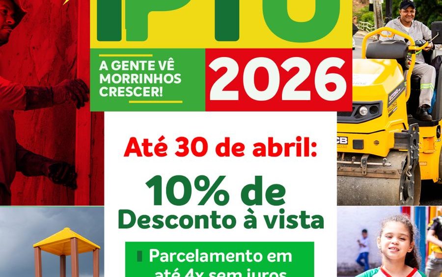 A Prefeitura de Morrinhos reforça que o prazo para pagamento do IPTU 2026 está chegando ao fim. Os contribuintes têm até o dia 30 de abril para realizar o pagamento.